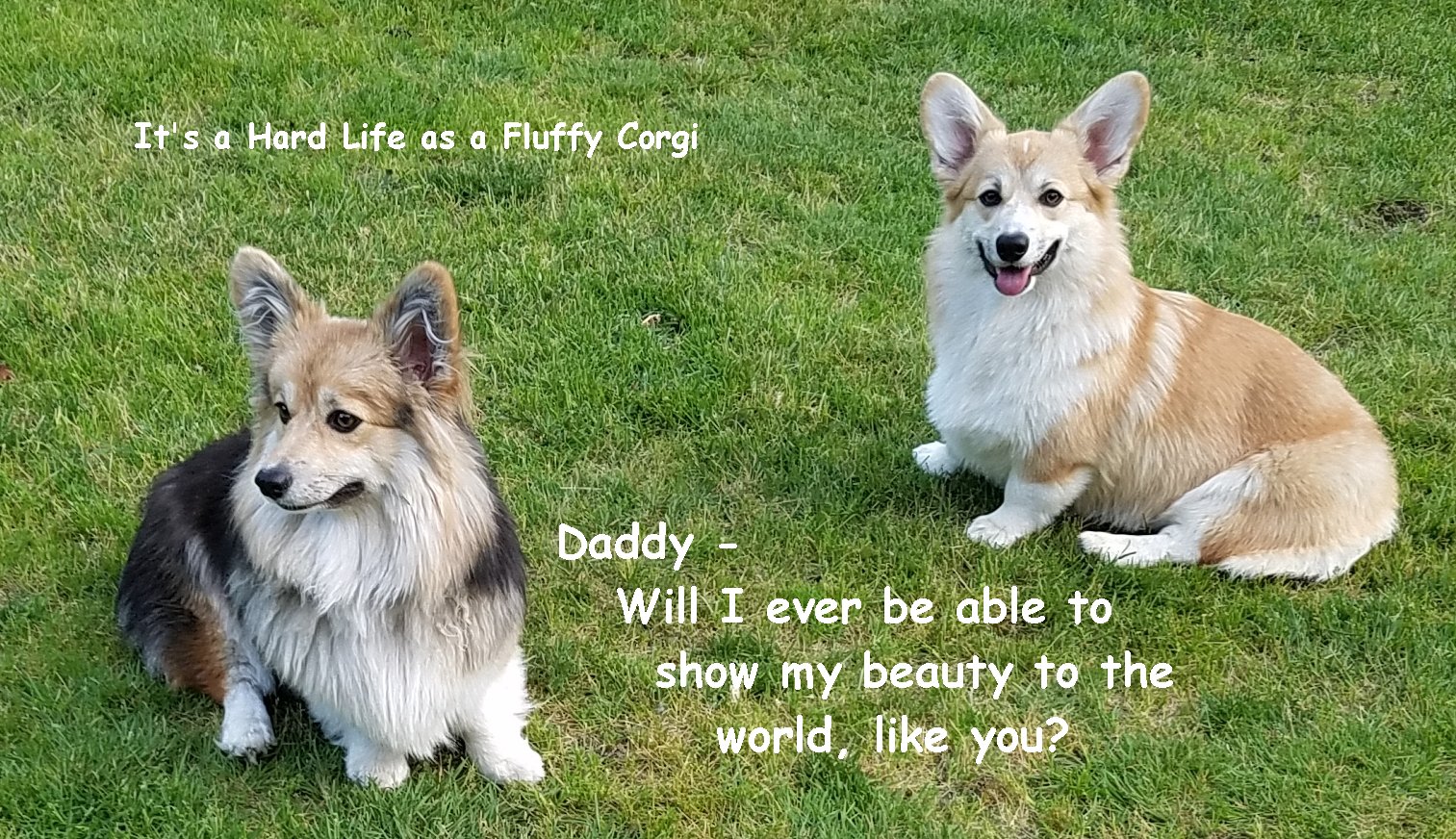 The title of the book is "It's a Hard Life as a Fluffy Corgi".