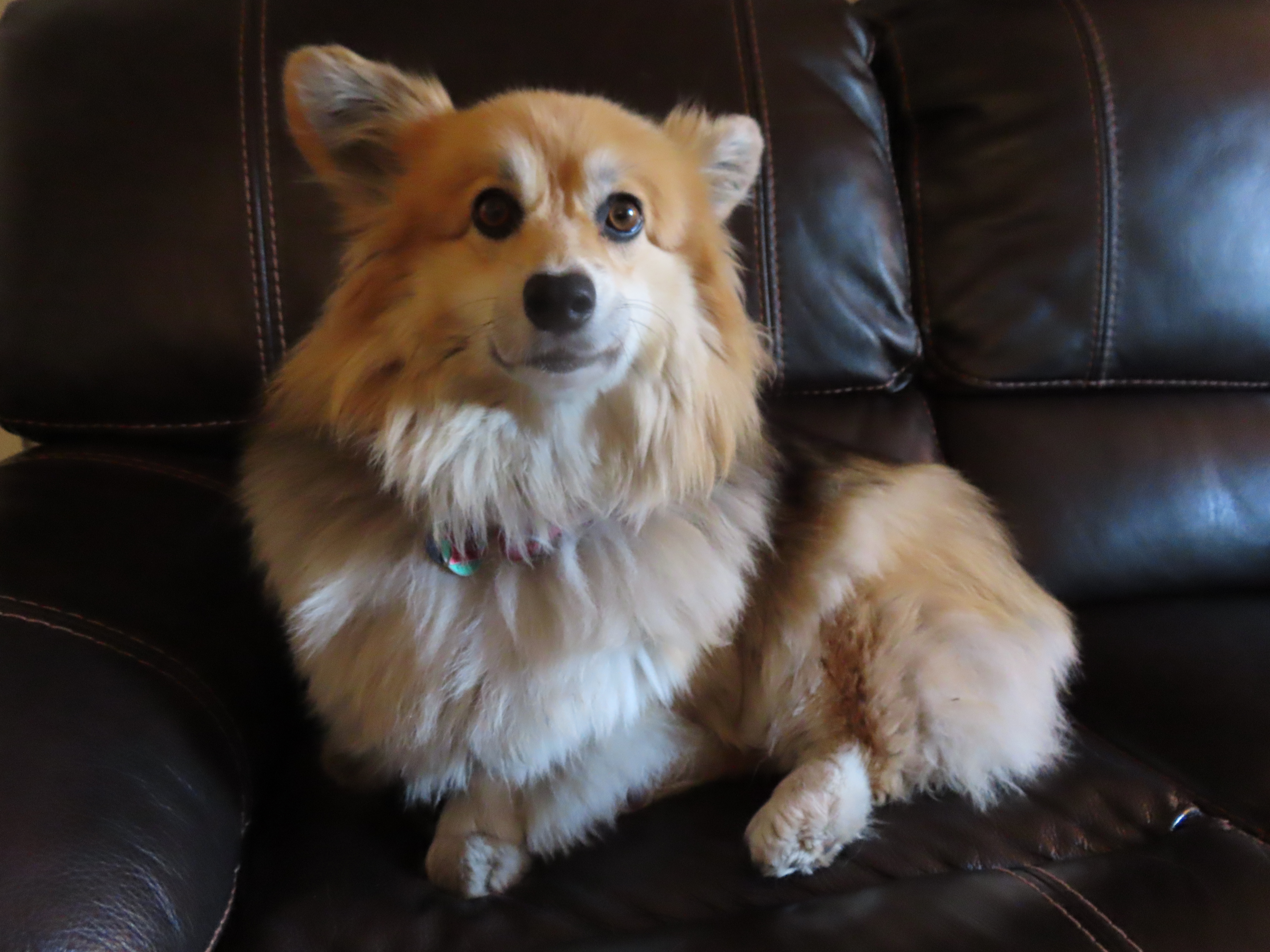 Harley is a rare "Fluffy" Pembroke Welsh Corgi, born with a recessive gene that give her extra-long, feathery hair.